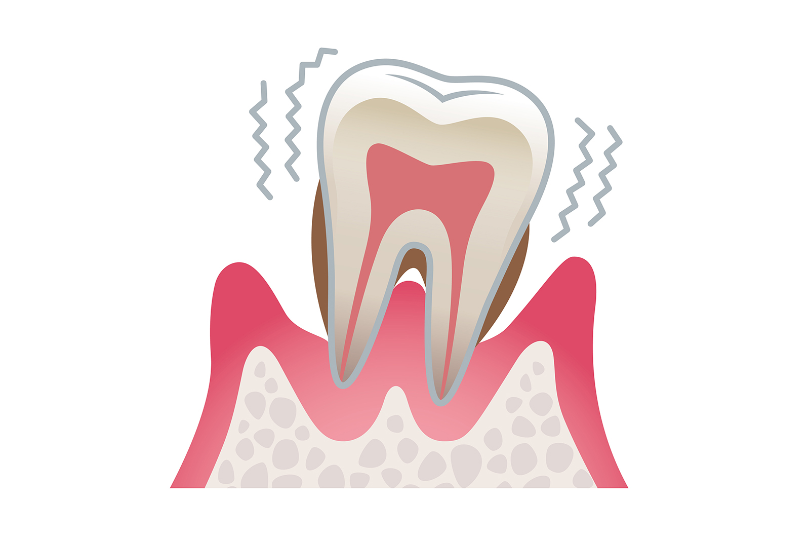 歯周病です。特に病状が進行すると、歯を支える骨が溶けることで、最終的には歯が抜けてしまう危険性があります。一部の歯科医院では、状況に応じて抜歯を選択する場合があります。