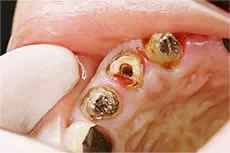 虫歯が深く進行すると、被せ物をつけるための歯の土台がなくなり、通常は抜歯となります。