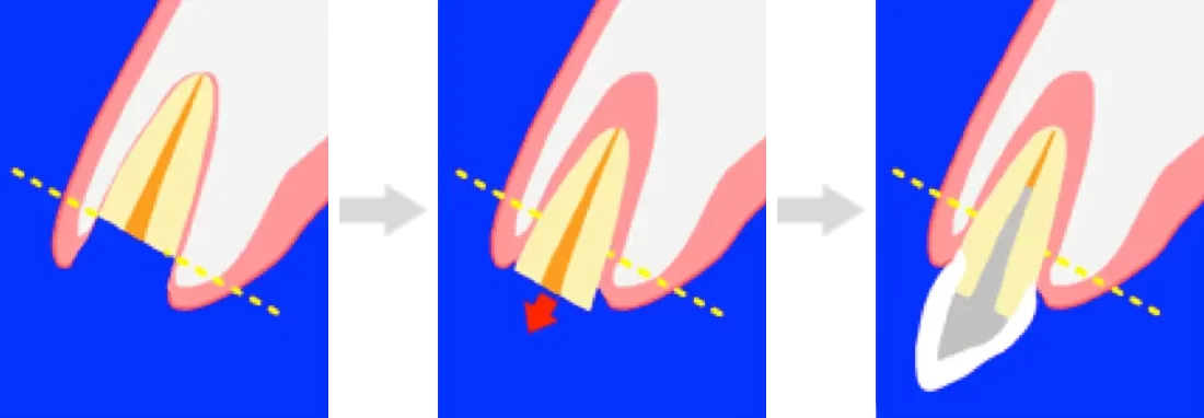 歯ぐきに埋まっている根の部分を少し引き上げ、健康な部分を露出させることで被せ物の装着が可能に。