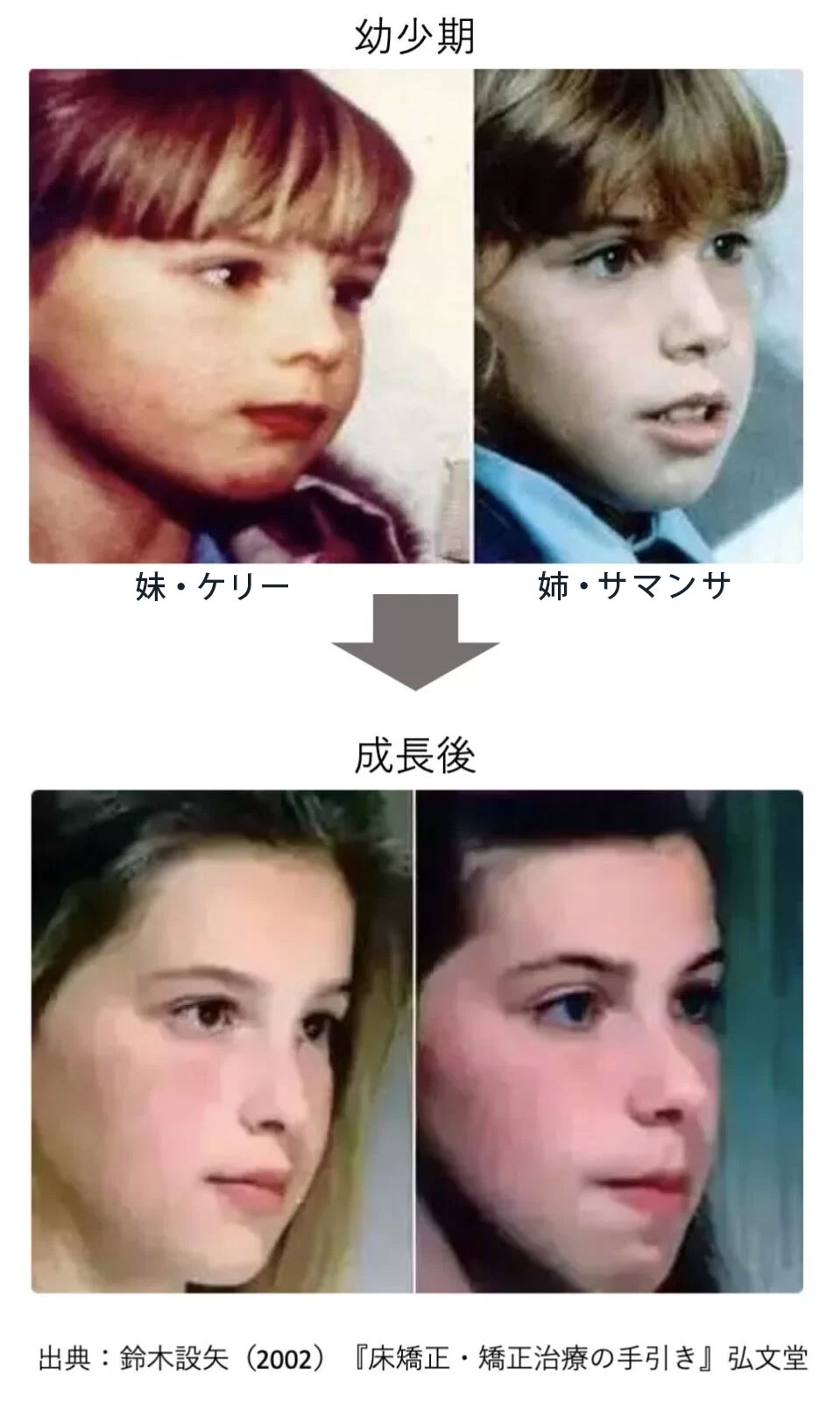 一方、口呼吸をしていた姉・サマンサは、口元がたるみ、顔全体が縦長になってしまったのです。