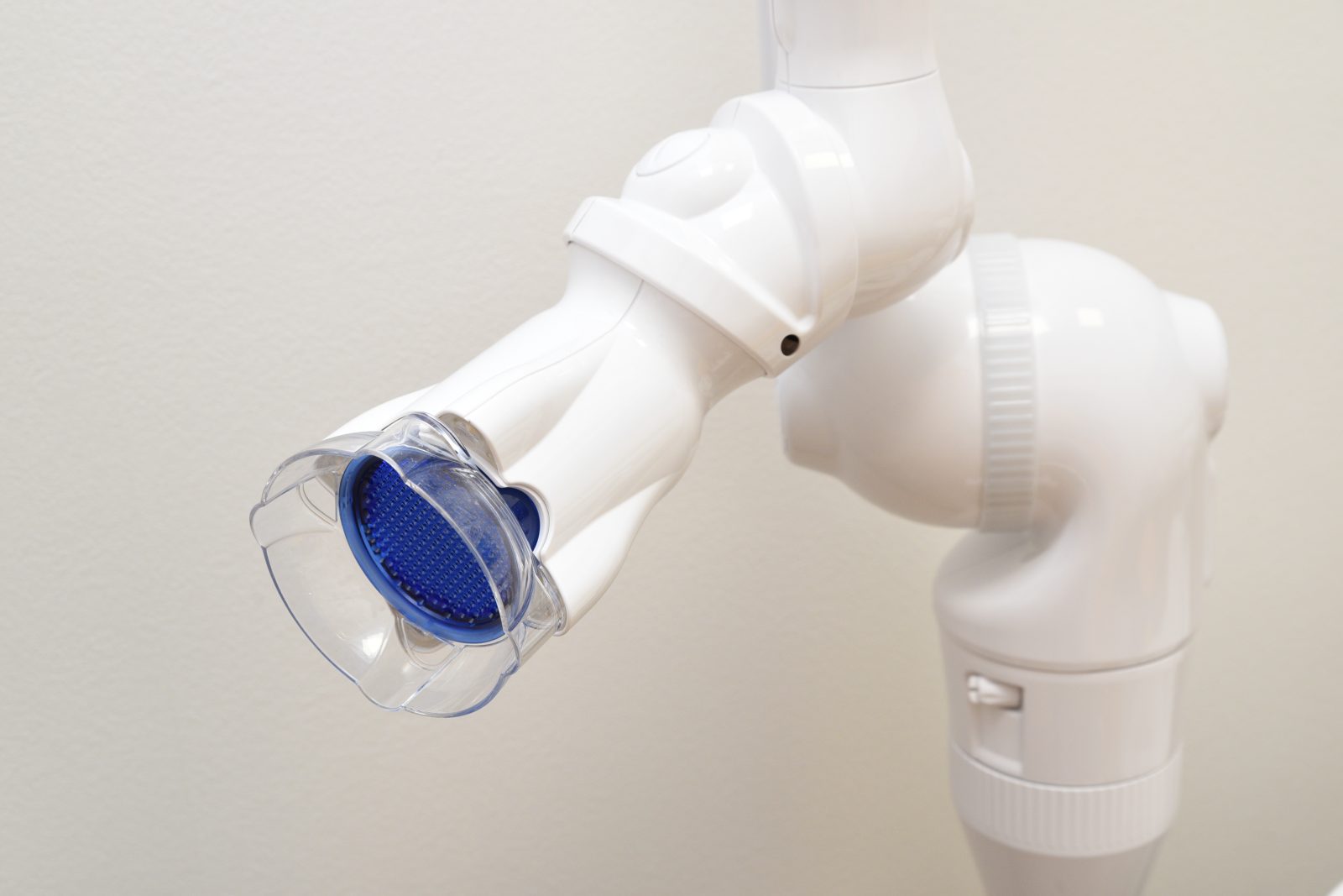 当院では、こうした浮遊粉塵、血液などが院内に拡散するのを防ぎ感染を予防するため、診療室に口腔外バキュームを設置しています。快適でクリーンな診療室をつくるためには欠かせません。