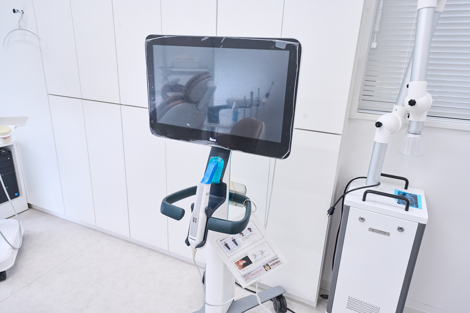 主に、根管治療(歯の神経の治療)や精密な修復処置、外科処置などに活用し、治療の正確性と安全性を高めることに役立っています。また、モニターに映し出された映像を通して、患者さまにも現在の状態や処置内容をわかりやすくご説明できるのも大きな特長です。