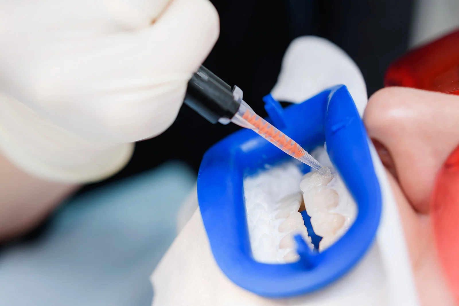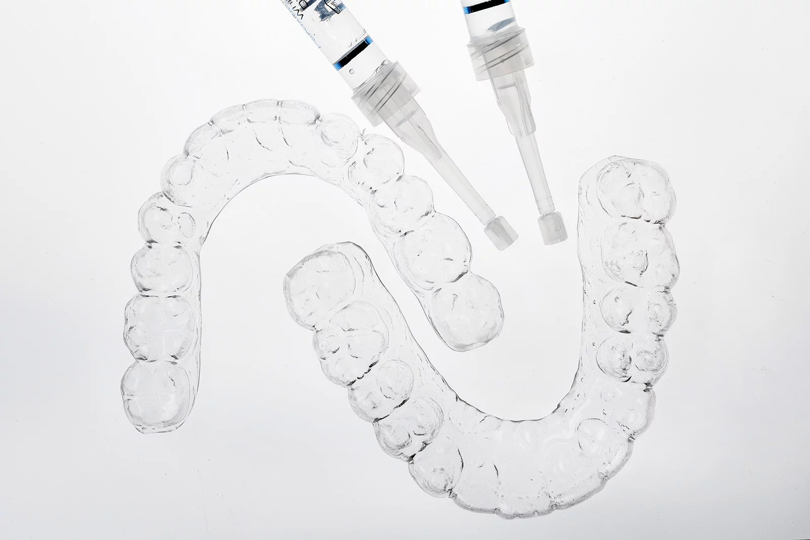 マウスピースにホワイトニング剤を入れてお口に装着します。このプロセスを1日2時間、約2週間続けていただきます(具体的な時間や回数は医師の指示に従ってください)。