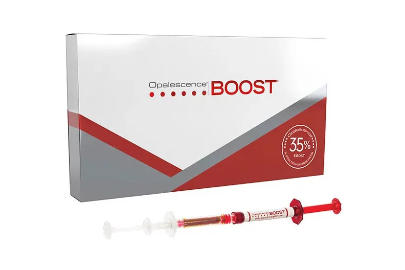当医院ではウルトラデント社(米国)の「オパールエッセンスboost」というオフィスホワイトニングをご紹介しています。このホワイトニングは歯にとても優しい成分を使用していますので、治療中の知覚過敏を起こしにくいという特徴も併せ持ちます。